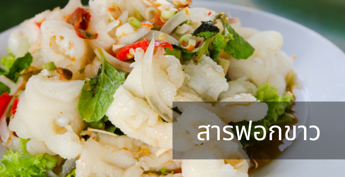 เชื่อว่าคุณคงเคยทานอาหารหรือผักผลไม้เหล่านี้ ไม่ว่าจะเป็น ถั่วงอก ขิงฝอย ยอดมะพร้าว หน่อไม้ดอง เห็ดหูหนูขาว เล็บมือนาง เยื่อไผ่ แป้ง หรือเส้นก๋วยเตี๋ยว ฯลฯ รู้หรือไม่ว่าอาหารเหล่านี้มักเป็นอาหารที่ใส่สารฟอกขาวหรือ สารโซเดียมไฮโดรซัลไฟต์ (Sodium Hydrosulfite) เพื่อให้อาหารมีสีขาวดูน่ารับประทาน ซึ่งปกติแล้วสารฟอกขาวจะใช้ในอุตสาหกรรมที่เกี่ยวกับการฟอกสี เช่น กระดาษเส้นใยไหม แห อวน และเครื่องหนัง สารฟอกขาวจะมีมีลักษณะเป็นผงผลึกสีขาวละลายน้ำได้ หากสารชนิดนี้สะสมในร่างกายในปริมาณมาก จะทำให้หายใจติดขัด ปวดท้อง ท้องร่วง เวียนศีรษะ อาเจียน หรือหมดสติได้ รวมถึงอาจทำให้เกิดอาการอักเสบในอวัยวะที่สัมผัสอาหาร เช่น ปาก ลำคอ กระเพาะอาหาร เกิดอาการปวดหลัง ปวดศีรษะ อาเจียน แน่นหน้าอก หายใจไม่สะดวก ความดันโลหิตลดลง ทั้งนี้ขึ้นอยู่กับปริมาณที่ได้รับ และหากได้รับสารในปริมาณที่มากอาจทำให้เสียชีวิตได้